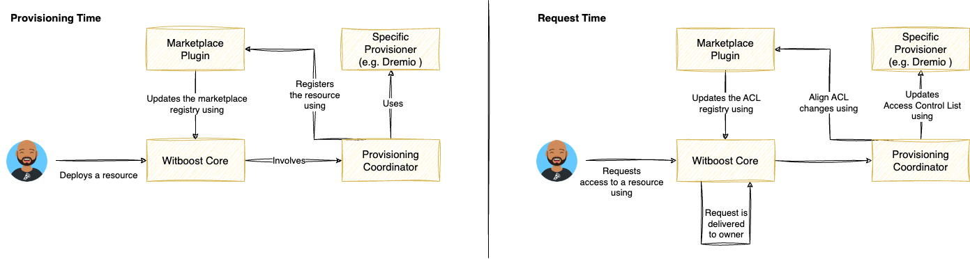 - The marketplace plugin is invoked by the provisioning coordinator to update the Access Control List also on the witboost side